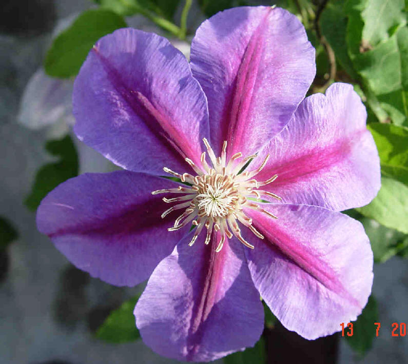 New large-flowered hybrid clematis plants, flowering for the first time, in 2003
