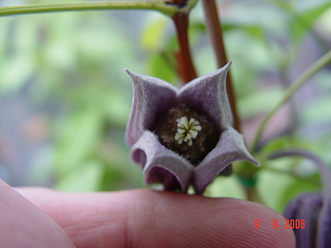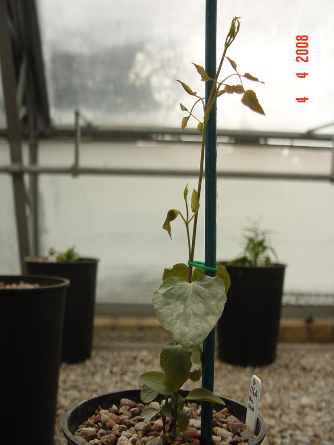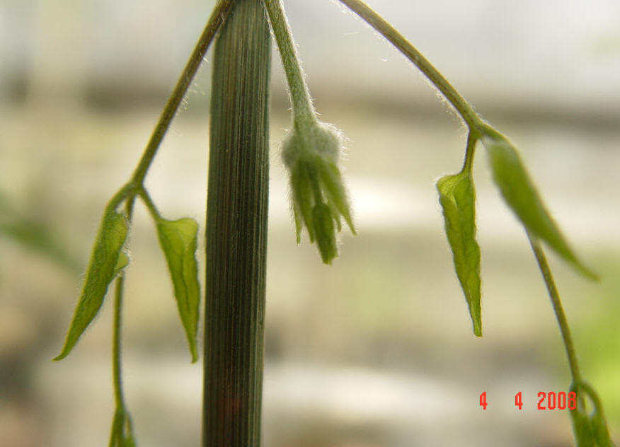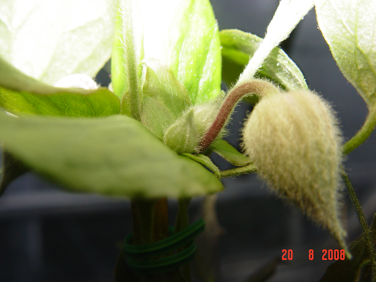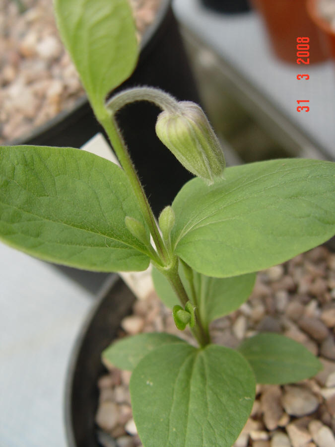 (Plant raised as) Clematis pitcheri begins to form flowers: