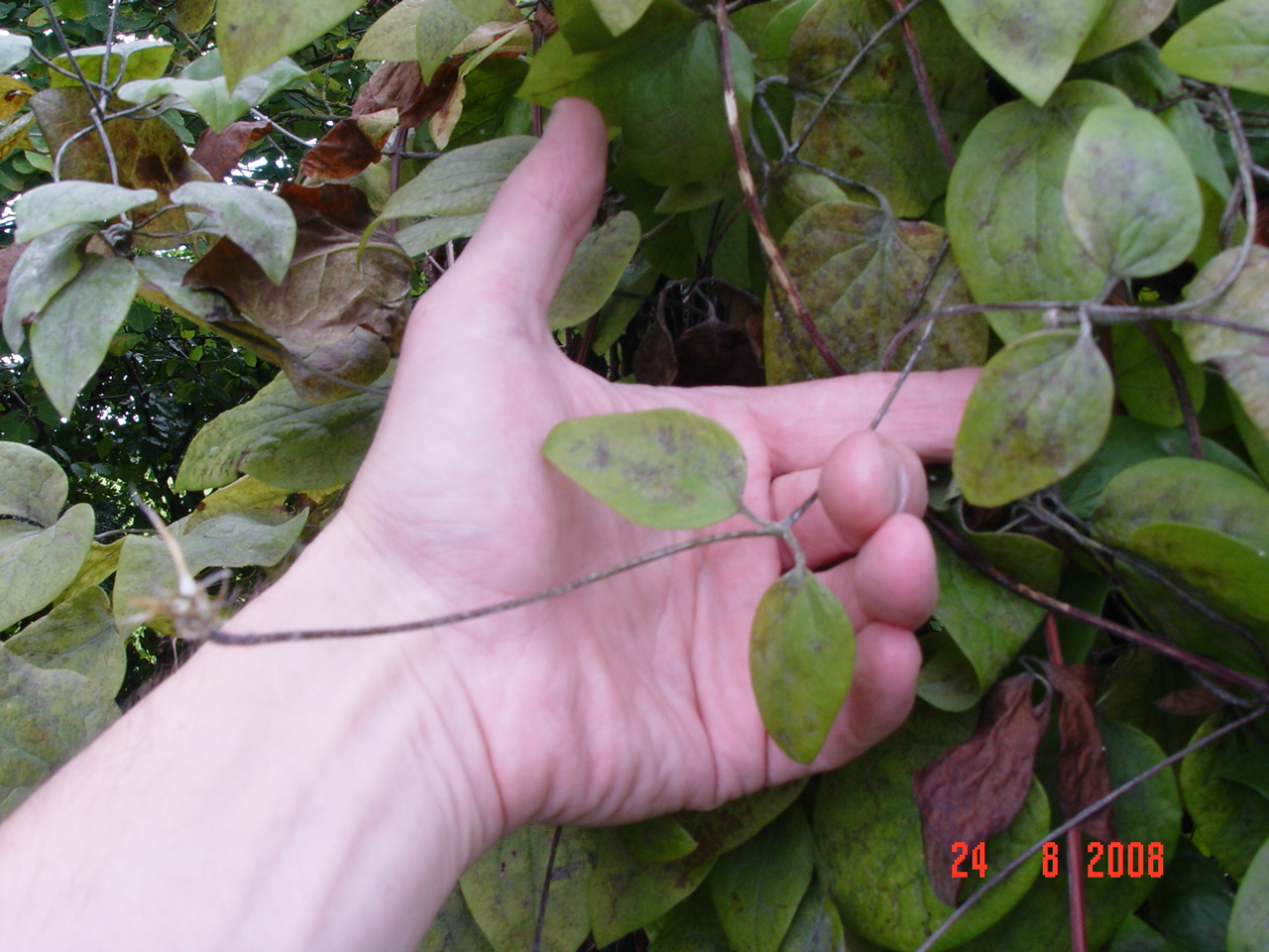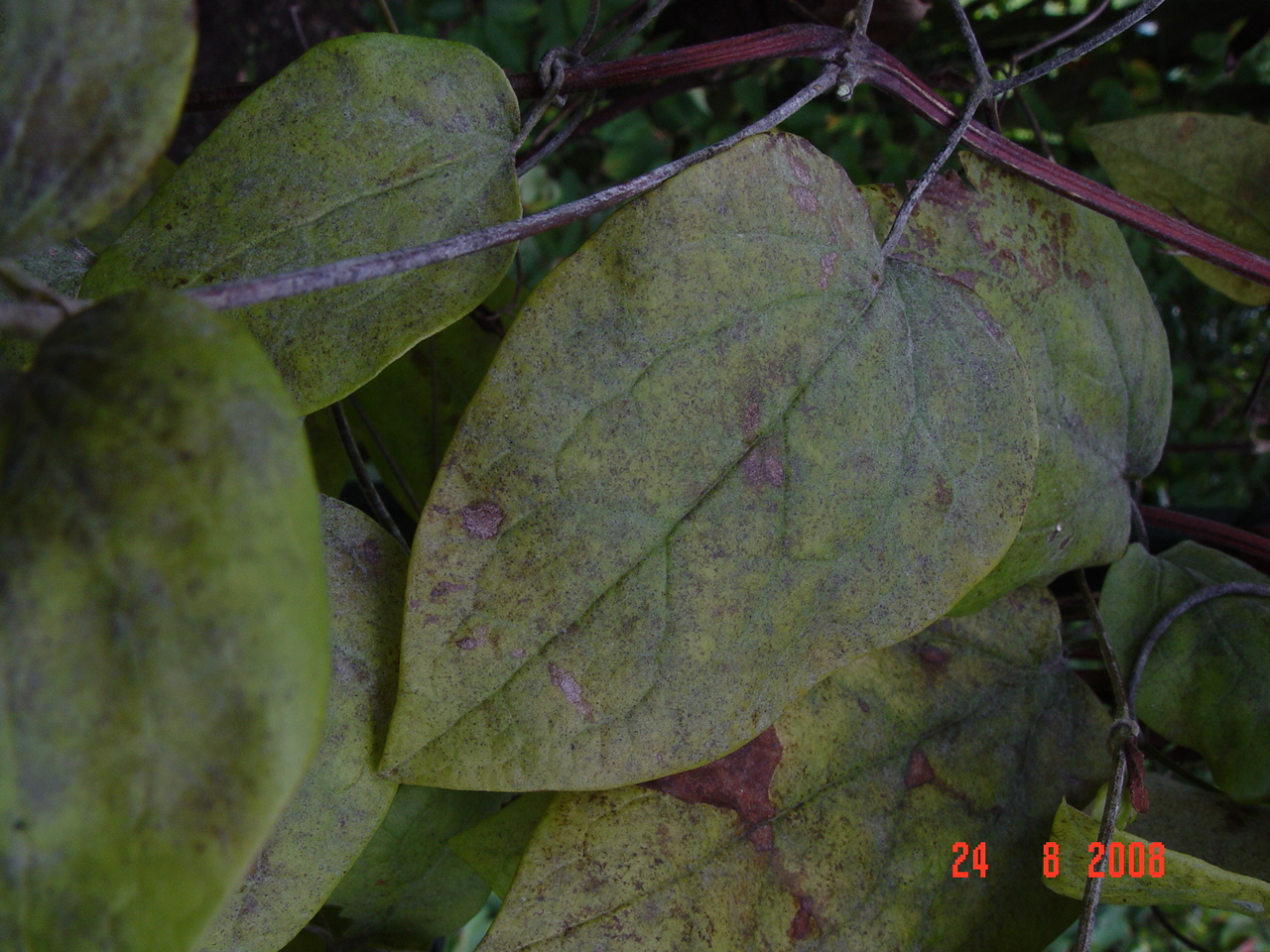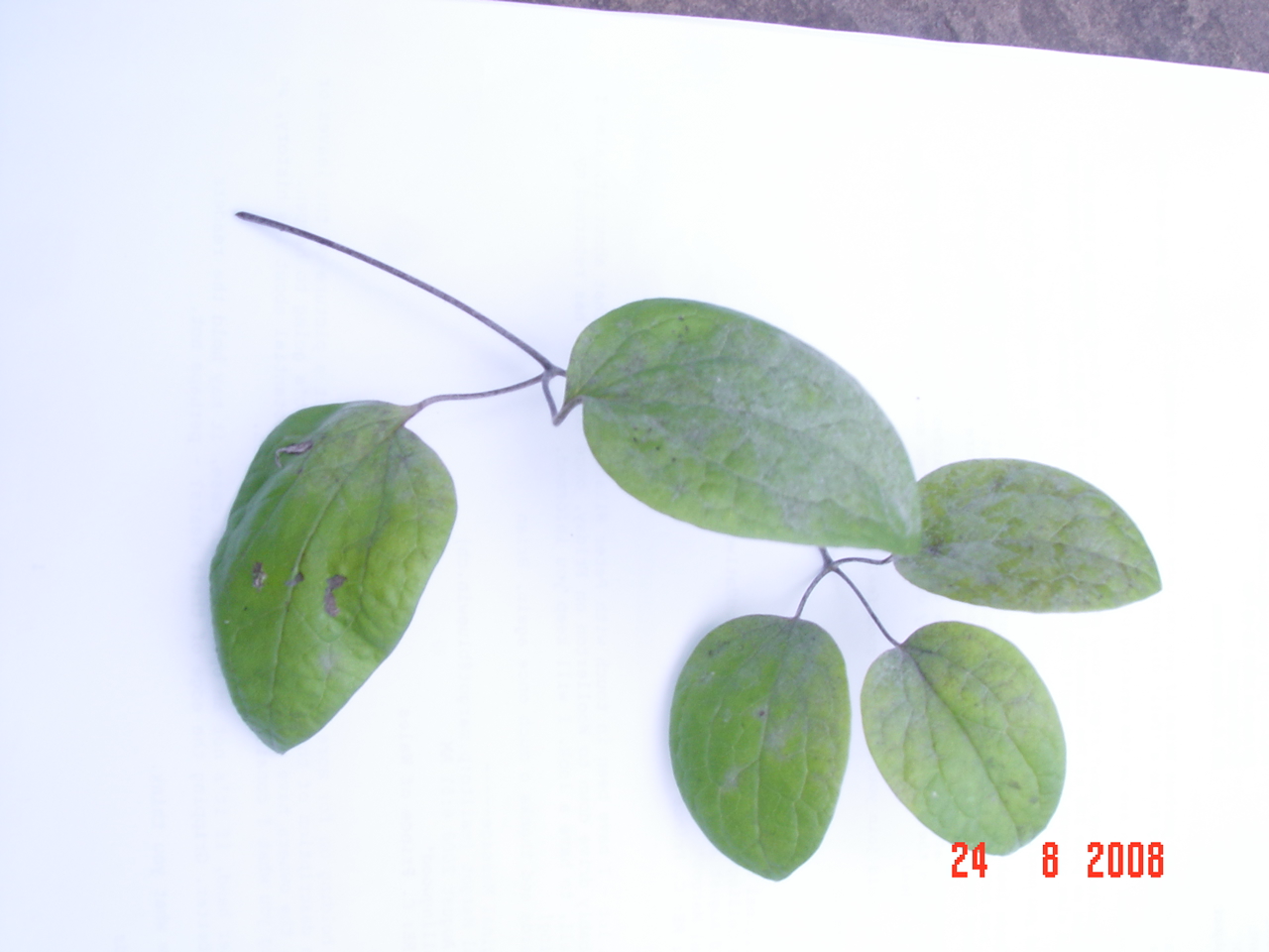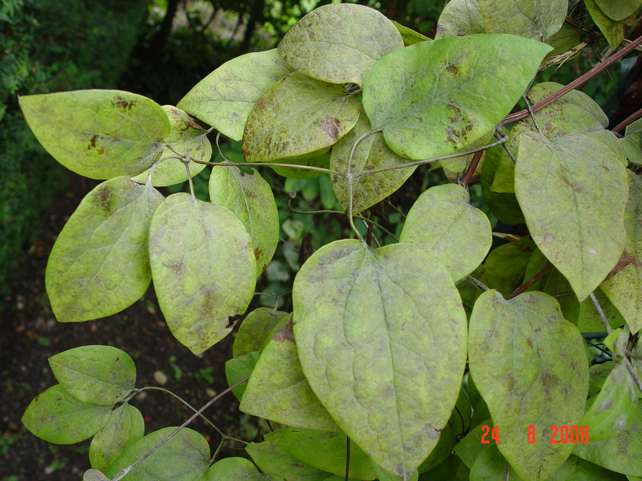 (Plant raised as) Clematis pitcheri begins to form flowers: