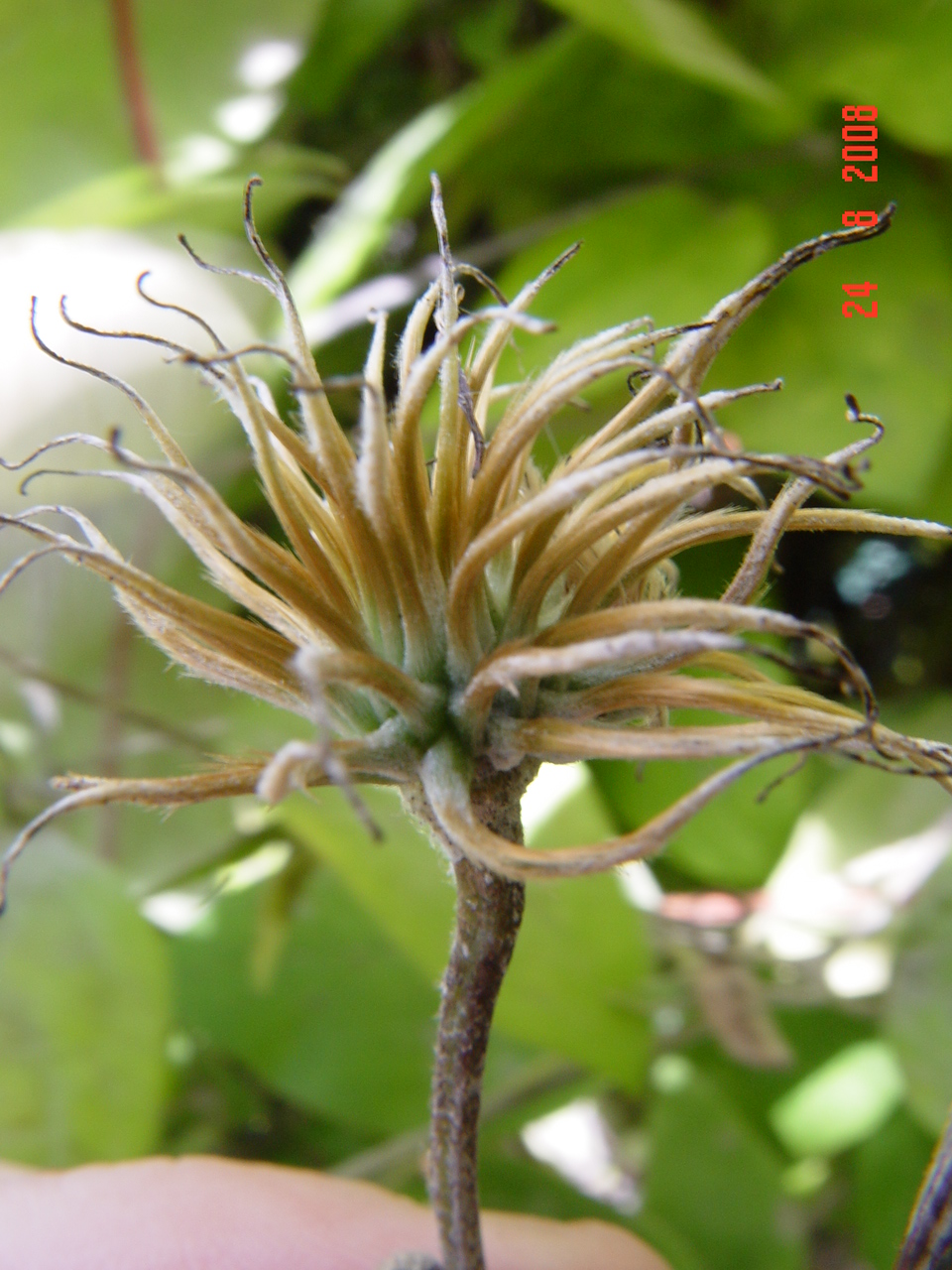 (Grown as) Clematis ochroleuca - seedling germinated by Bengt Sundström - seed from Gothenburg Botanic Garden. The seedling was kindly given to me by Bengt when he called at my greenhouse in March 2007. The plant and first flower: