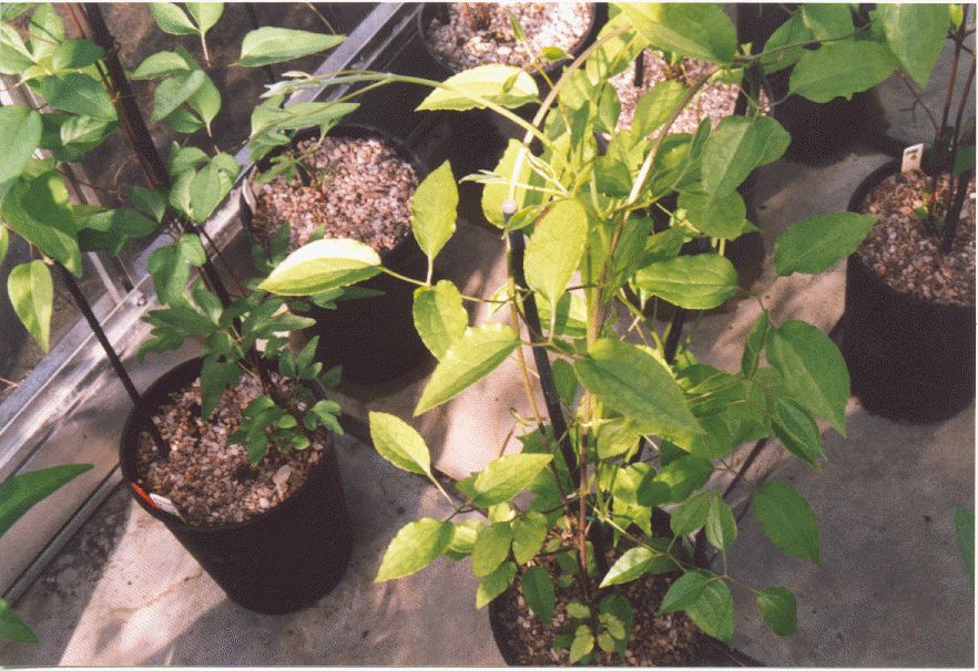 Get a diary for your greenhouse, an ordinary one is fine - for noting occasional things down; things like: what quantity of feed you used, when things happened (for example, date extension growth resumed after Winter, re-pot dates of particular plants, onset of high insect levels, weather particulars, date of last frost - whatever seems significant; preferred fungicides: nuggets of information upon which you happen, in relation to the nature of particular plants, as you go about your hobby, the date you first needed to spray insecticide, the date in the season when it was necessary to provide shade, etc, etc), for future reference. It sounds boring, but it really is the very most important thing! After a few years your clem-raising notes will become as valuable to you as Bob Monkhouse's joke-books are to him!! (An English comedian well-known for keeping records of a very large number of jokes and quips, anecdotes and other funny items over the fifty-year period of an illustrious career.) Far and away better, a five-year diary, so that you can compare notes from previous seasons, right there and then, with no effort.