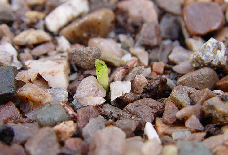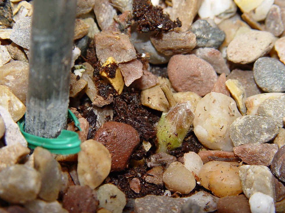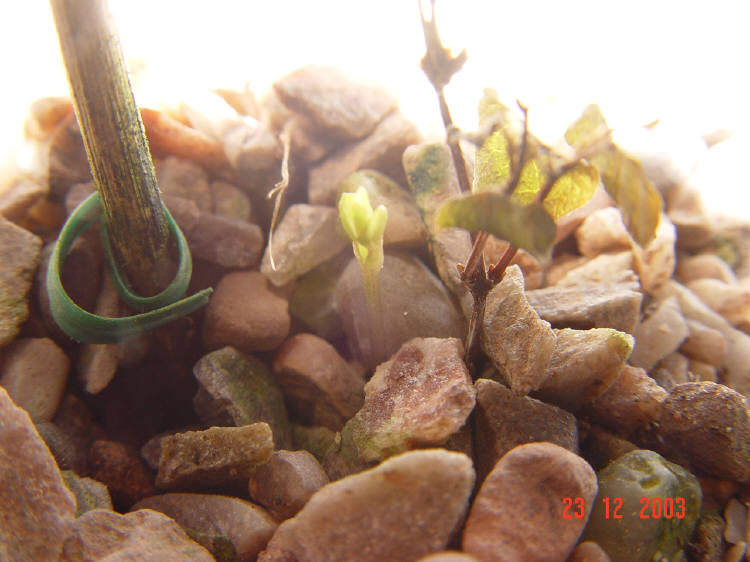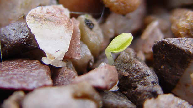 Germination time 447 days. C. texensis all-red form. Photos prior even to 'cotyledons' opening.