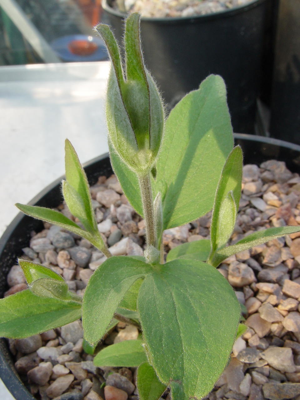 Plant received as a cutting, from Japan. An evergreen plant, and needing a slightly protected situation. C. anshunensis is from Sub-genus Campanella, Section Campanella. In Grey-Wilson it is name-changed to C. clarkeana and C. anshunensis has become a synonym.
