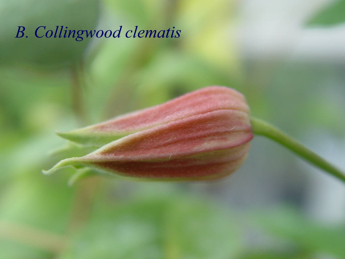 2. New atragene clematis seedling no. T167 first flowers eagerly anticipated, due to open in the next few days.