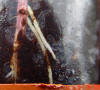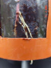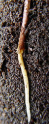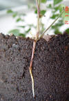 The cutting has been slipped down the side of the pot of the parent plant, some months ago. This time, a root has formed directly from the end of the point of severance of the cutting.