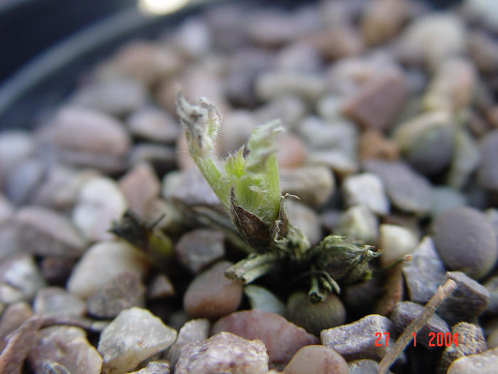This plant was acquired as a C. texensis seedling, unflowered, in March, as a very small plant, but it has made quick progress. It appears to be a hybrid. In October a late batch of flowers formed, which quite surprisingly have managed to open, despite the freezing temperatures and low light levels in the greenhouse. It'll be interesting to see the flowers next season.