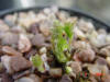 A tiny micropropagated plantlet (cutting taken 20th June 2004) is very quickly sufficiently established to wean into its own pot.