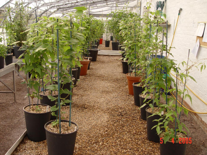 A total transformation as the plants get into rapid growth, and begin to flower, in the space of just two weeks! It's a very sunny day and the shading is in place. The new large-flowereds (57 plants) are beginning to produce many new blooms and the foliage growth of all of the plants is much more dense than only two weeks ago: