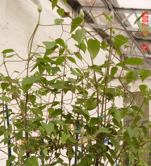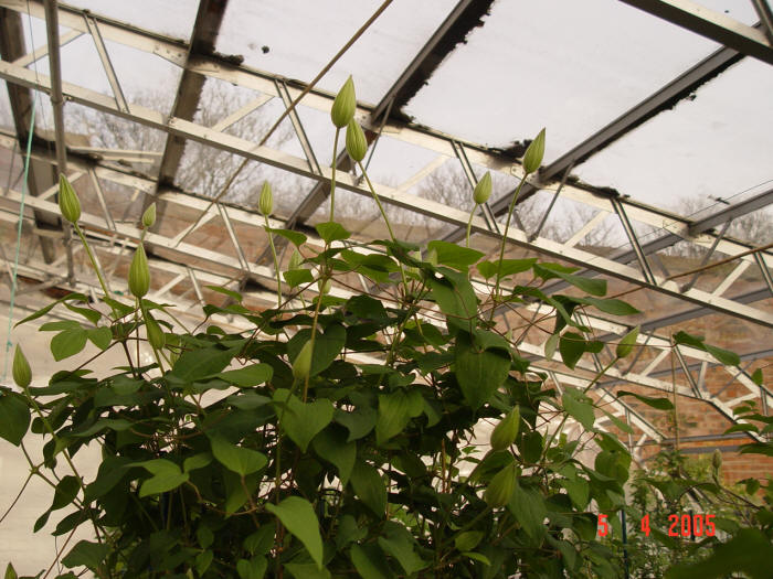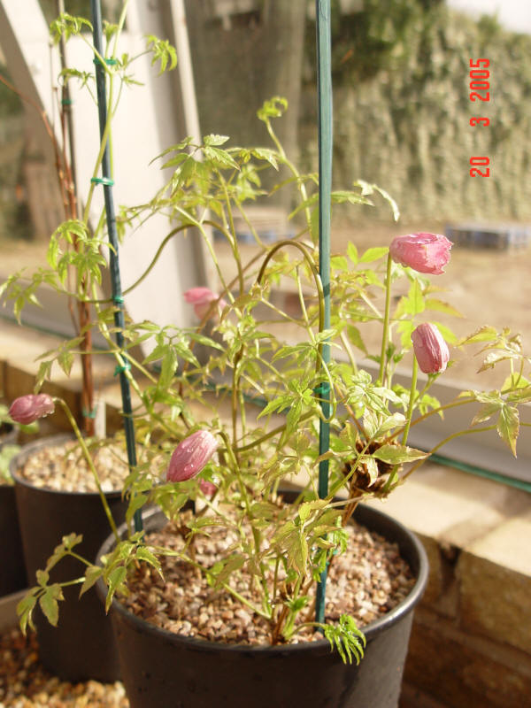 First plant into flower (in the new house) this year is an atragene - Finn's "Jutta", shortly to be followed by several early large-flowered hybrids.