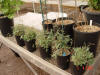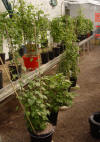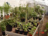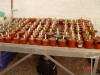 A bench full of younger plants, with a few larger specimens tucked in at the