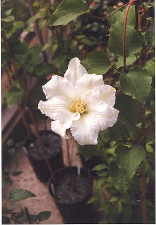 C. florida in house no.2...the vines have been trained around a wig-wam of stakes - the flowers find their own way out into the light easily enough. This is easy with a larger plant, but more difficult with young seedlings.