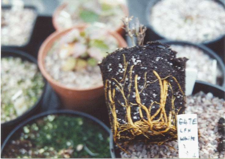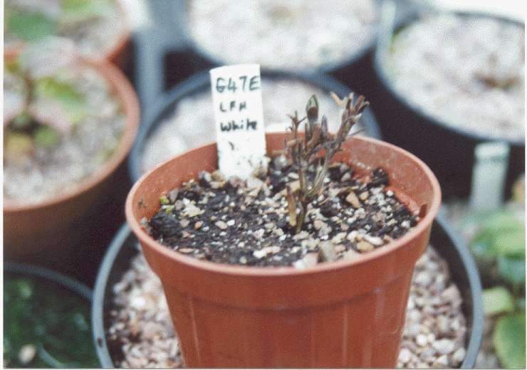 The re-growth of the plants during and after winter is dependent on temperature to a significant degree. In the UK we seem to be having milder and milder Winter conditions on average; at present in my greenhouses (December 25th - 30th, 2000) most of my seedlings from the last batch of germinations, though still young, have this year already produced early new buds in anticipation of resuming vigorous growth! See the Growth Gallery.