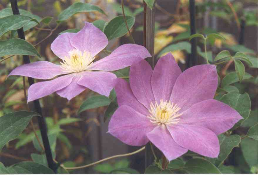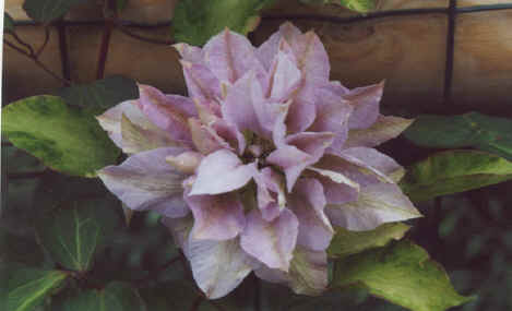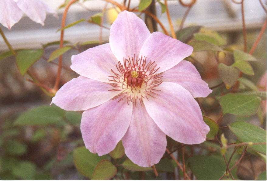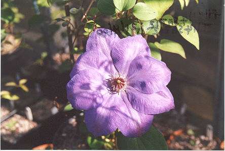 This next plant, Seedling B1, I bought at the AGM of the British Clematis Society on 13th March 1999, from Mike Brown, the Ex-Chairman of the Society. It is a very floriferous plant and produced blooms non-stop throughout the entire Summer of 2000. The plant is non-clinging, like Durandii, and the individual flowers last a long time.